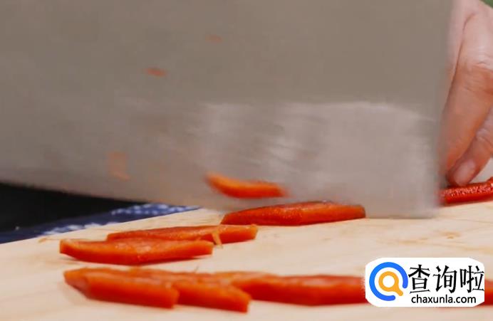 将甜椒去籽后,切成小块。