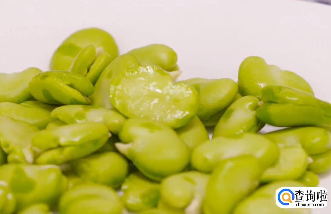 蚕豆只取豆米,先剥外皮,再剥掉内壳。