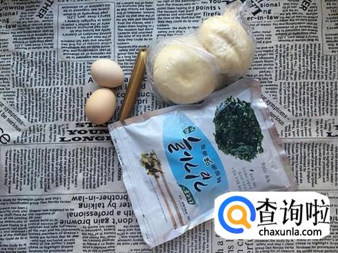 首先把所需要的馒头,鸡蛋,火腿,海苔碎准备好,海苔碎也可以换成西兰花碎或者胡萝卜丁