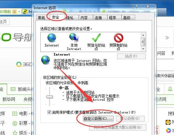 3、切换到【安全】选项卡,然后点击【自定义级别】按钮,如下图所示: