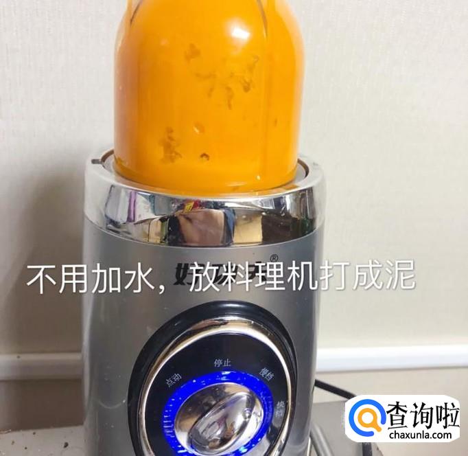 接着将蒸熟的南瓜放到料理机打泥,如下图所示。