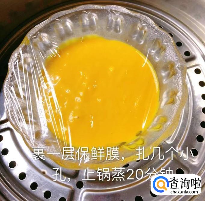 接着裹上一层保鲜膜,扎上几个小孔,上锅蒸20分钟,如下图所示。