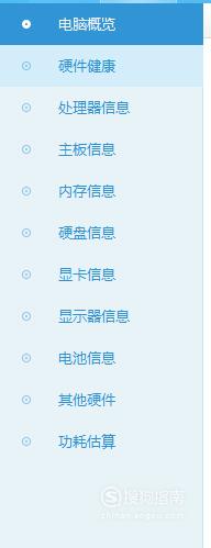 左侧有详细的硬件配置菜单,包括了电脑配置的各个方面,如下图所示: