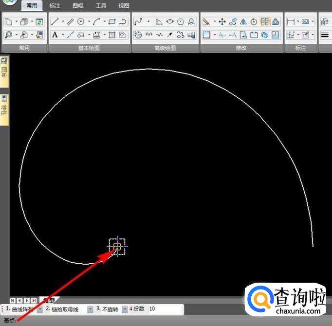 第2步选择基点,最好是选择绘制阵列图集的曲线端点,防止出错;