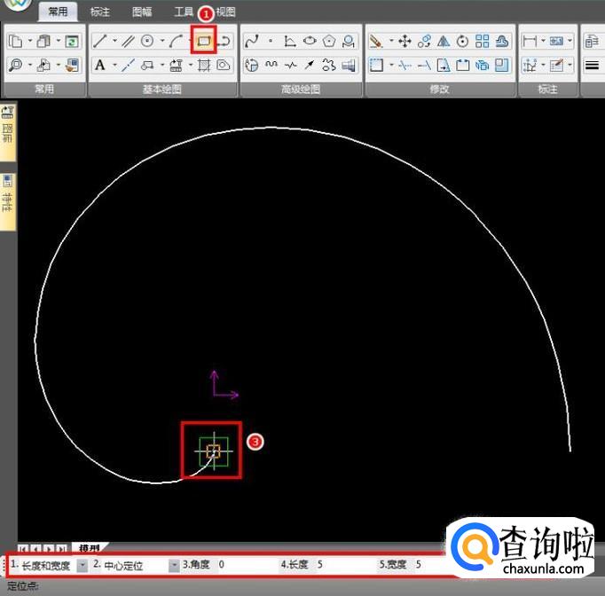 接着绘制要阵列的图集,这里使用矩形命令绘制一个小的正方形作为演示,以曲线端点为中心绘制正方形;