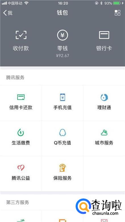 首先点击微信中的钱包,如下图所示。