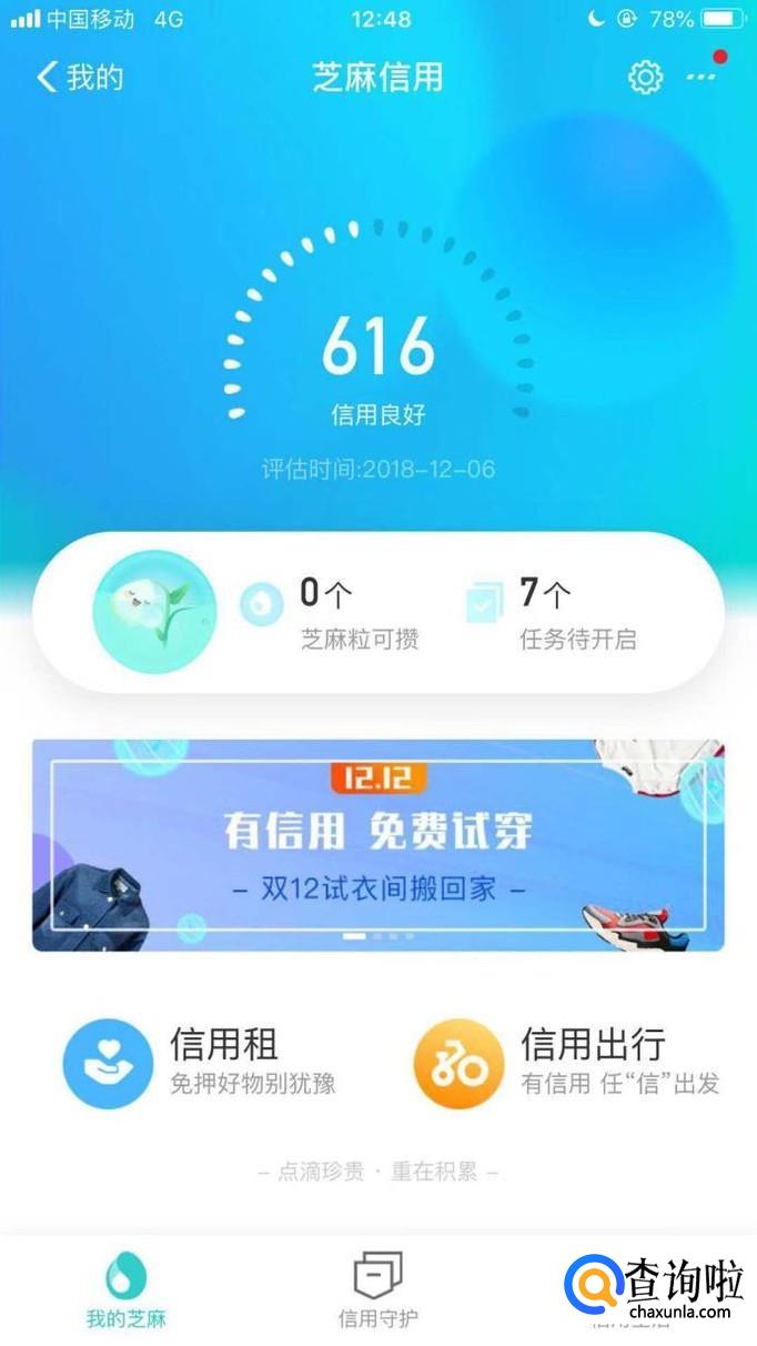 接着点击芝麻信用,如下图所示。