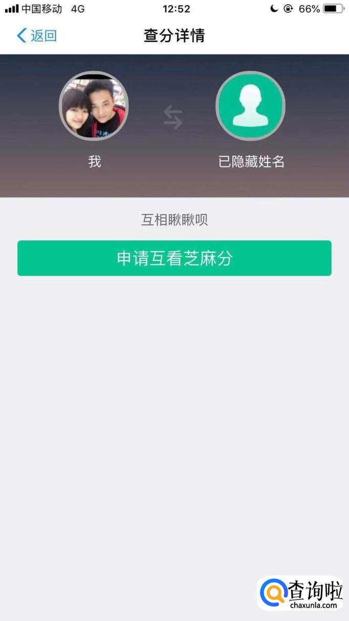 最后点击申请互看芝麻分,如下图所示。