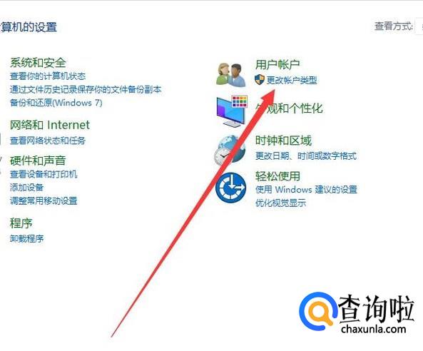 进入之后,点击“更改账户类型”,进入下一页面,如图所示。