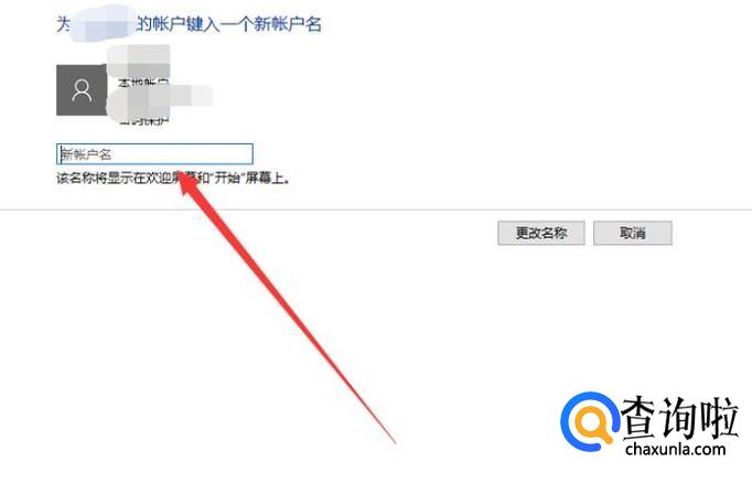 进入之后,将想要设置的账户名称输入在图示位置,点击“更改名称”,如图所示。