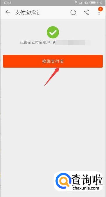 最后会显示我们目前绑定的支付宝账号,想要解绑或换绑就点击下方即可。