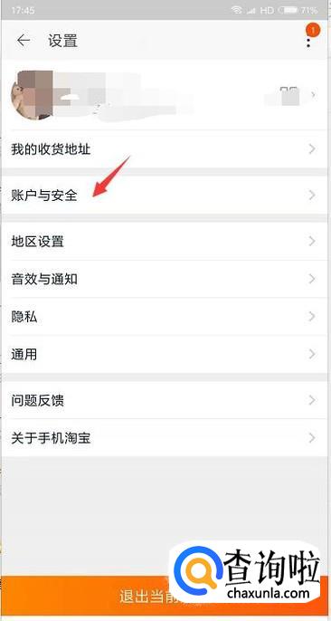 接着就会看到账户与安全的选项,点击一下。