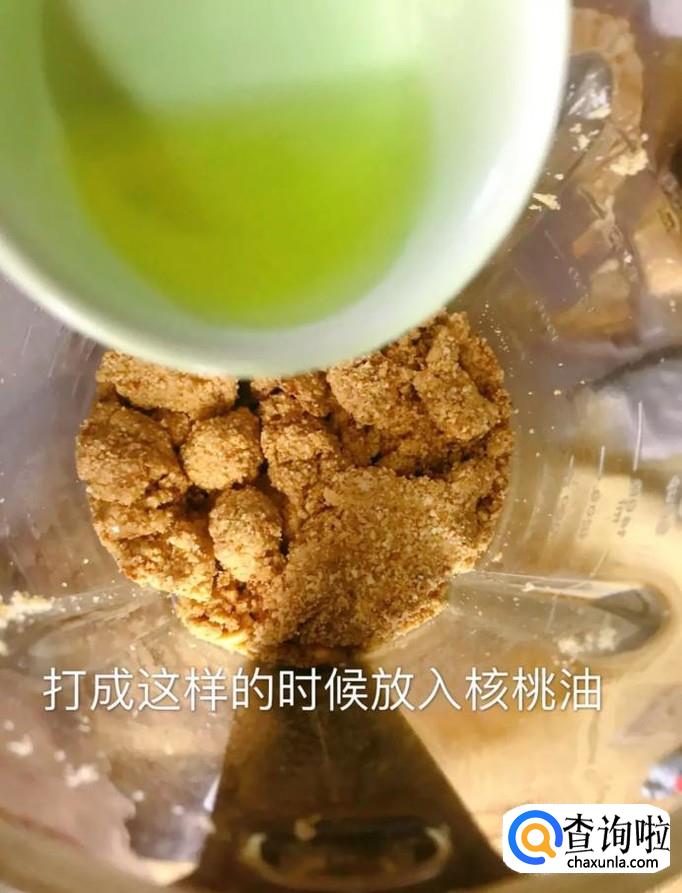 然后往料理机中加入核桃油,继续打开料理机运作15秒左右,如图所示。
