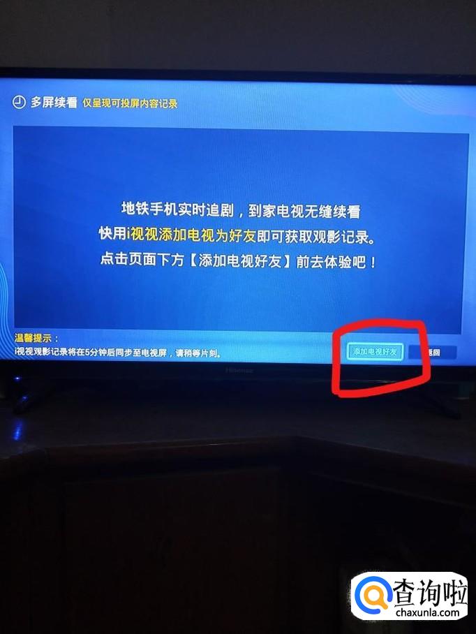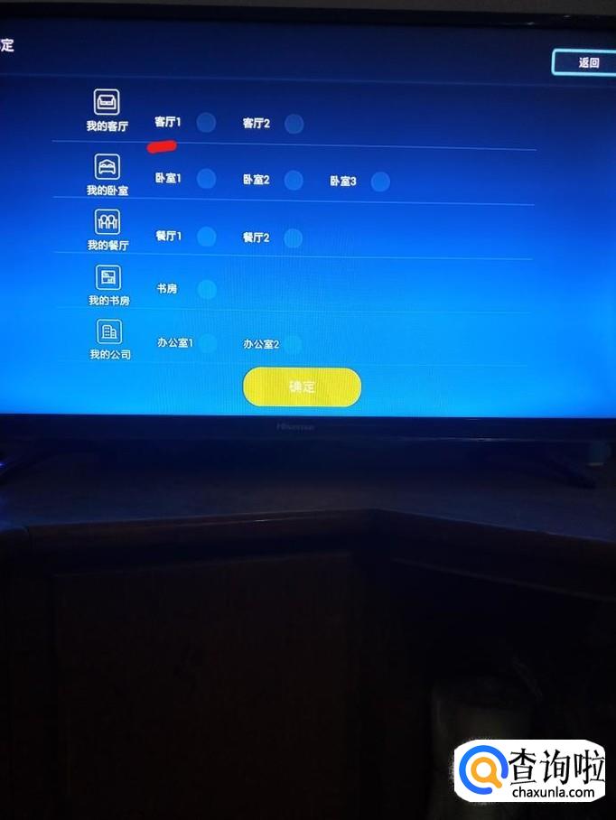 添加好友后,选择电视位置并确定,如”客厅1“