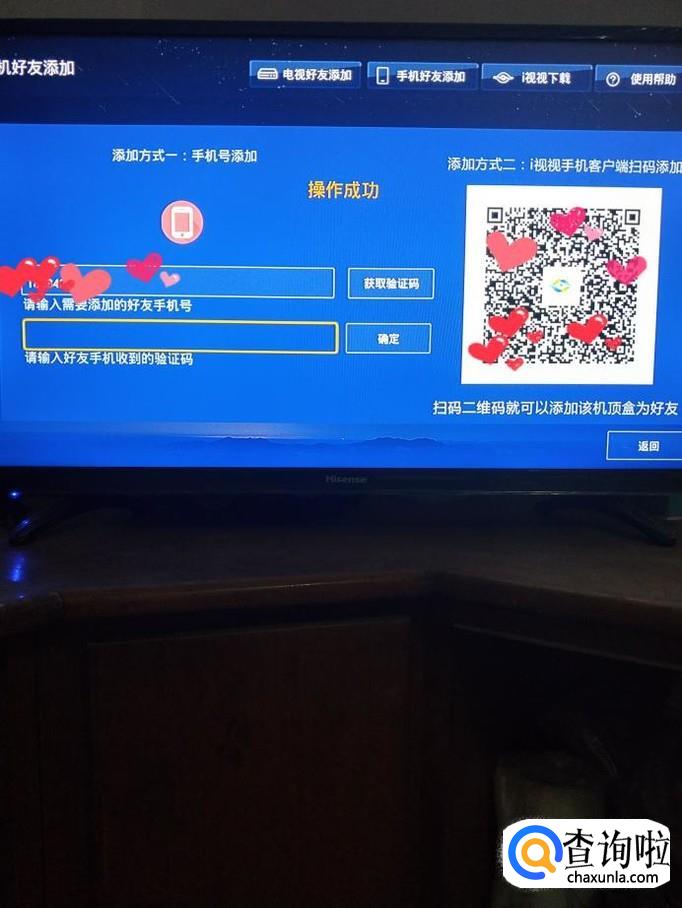 可以通过手机验证码或扫描二维码”添加电视好友“
