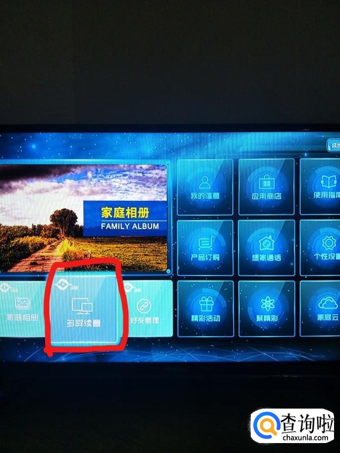 打开电视,选择屏幕右下角”多屏互动“,并确认