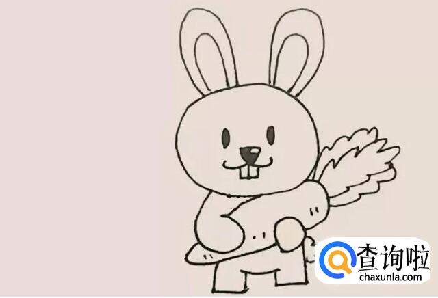 两手中间再给它画上一个大萝卜,叶子注意用波浪线来画。