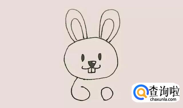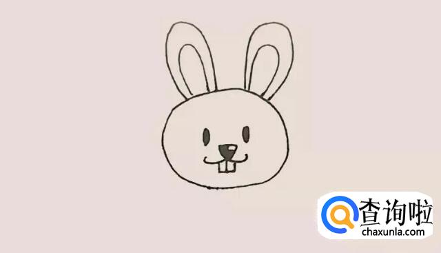 在头里面画上眼睛鼻子和嘴巴,嘴巴里再加上一个大门牙,这个是兔子的标志哦!