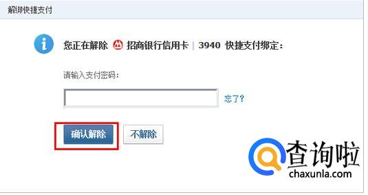 在点击解绑后,在弹出的页面中正确输入自己的支付密码,就可以解除绑定了,然后就会弹出研究解除绑定成功的页面,这就说明解绑成功了。