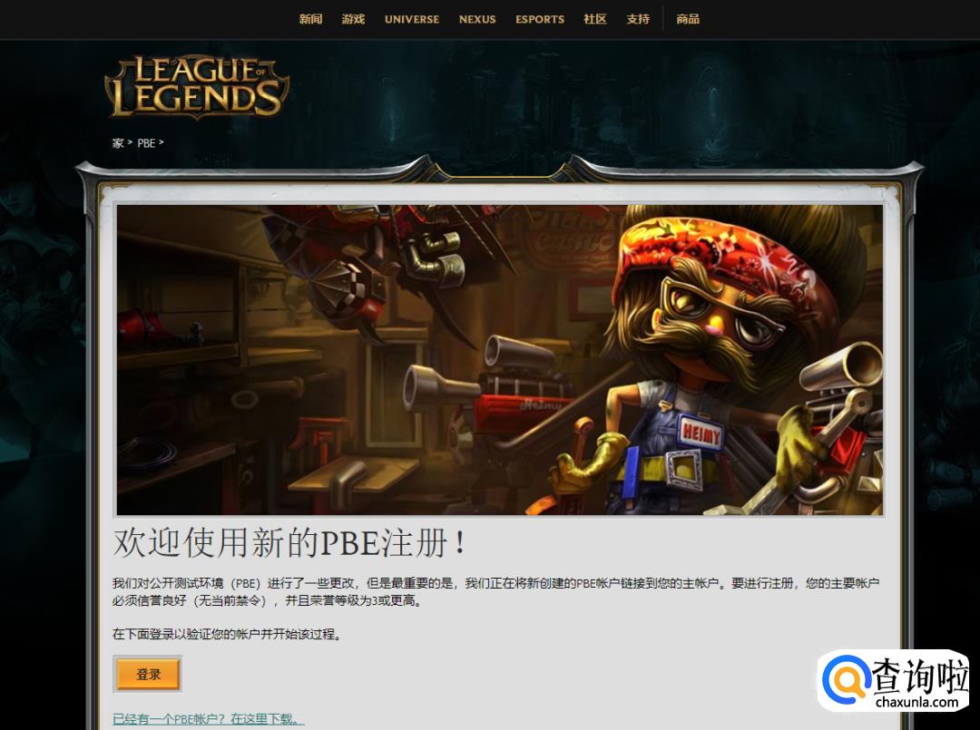 如果是美测服的话,需要用谷歌搜索league of legends pbe,进入下图网站登陆美服账号即可申请美测服资格(要求正式服达到荣誉三星,也就是蓝色的球)。