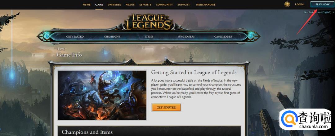 进入lol美服官网后,在页面上找到【download&play】,或者直接点击右上角的【play now】。