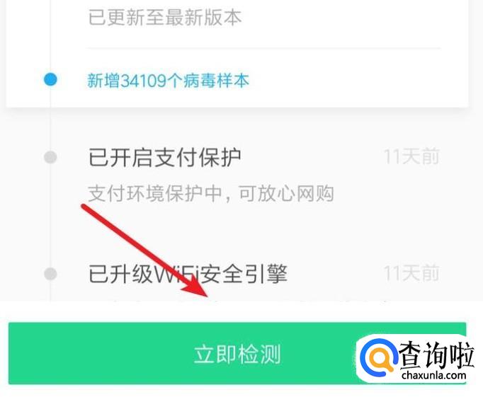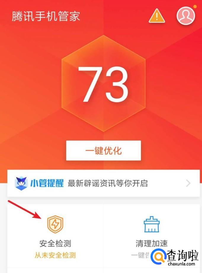 打开后,在首页就可以看到‘安全检测’,点击打开