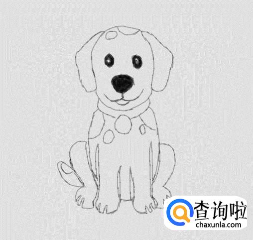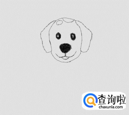 在眼睛的下面画出小狗的鼻子和嘴巴,如图所示: