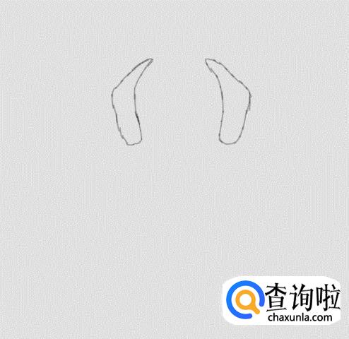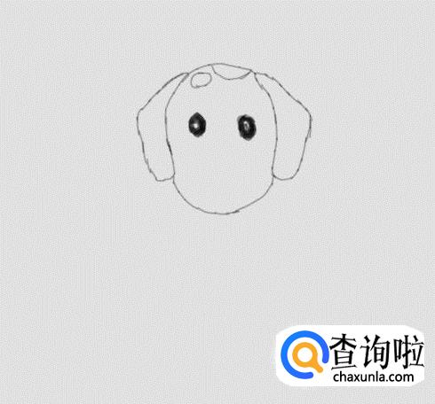 在耳朵的基础上再画出小狗的头部轮廓,然后在头部上画出小狗的两只眼睛,如图所示: