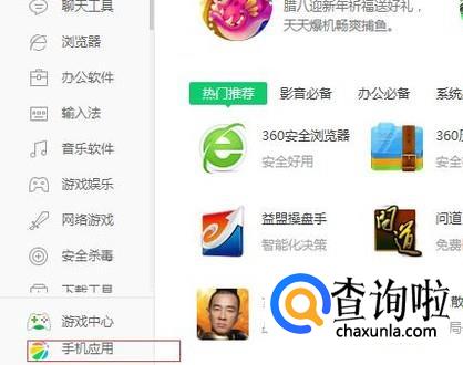 然后打开电脑上的360软件管家在最下方找到手机应用点击进入界面