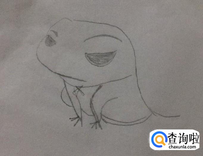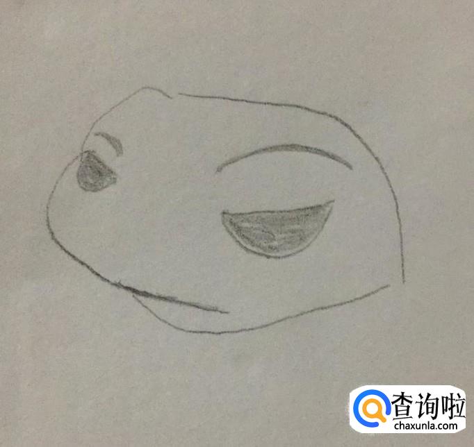 首先在A4纸上画出旅游青蛙的头部,如下图所示。画这部分的时候可以想象成壁虎的脑袋