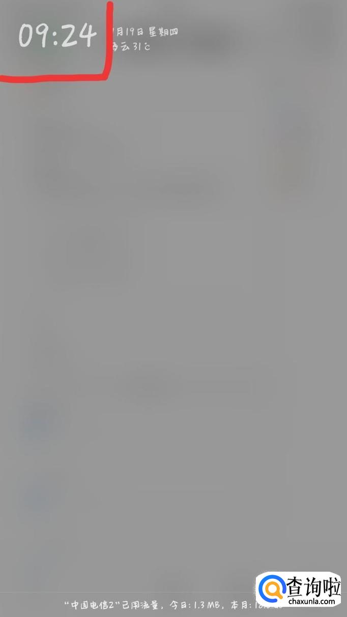 在任意的手机界面,下滑屏幕,进入上方通知栏,再点击通知栏左上方的时间。