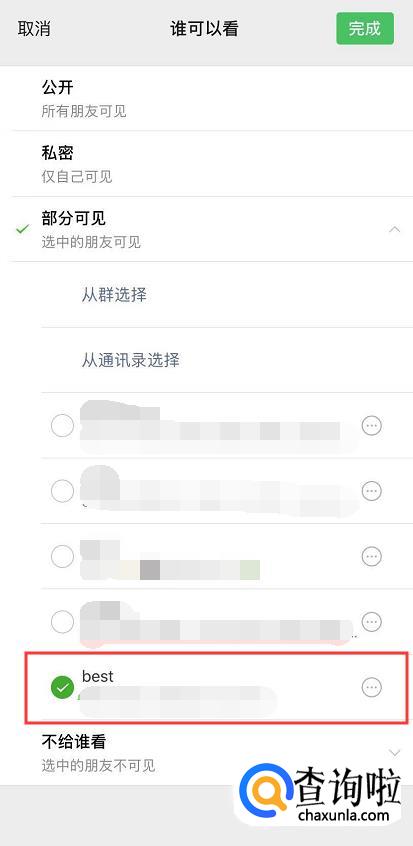 这些好友能看见你的这条朋友圈。