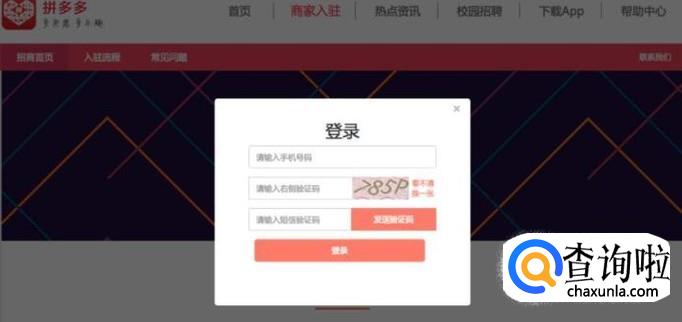打开拼多多官网,点击商家入驻立即入驻,即可进入商家入驻页面。