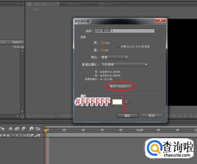 将固态层颜色设为白色,单击确定创建固态层。