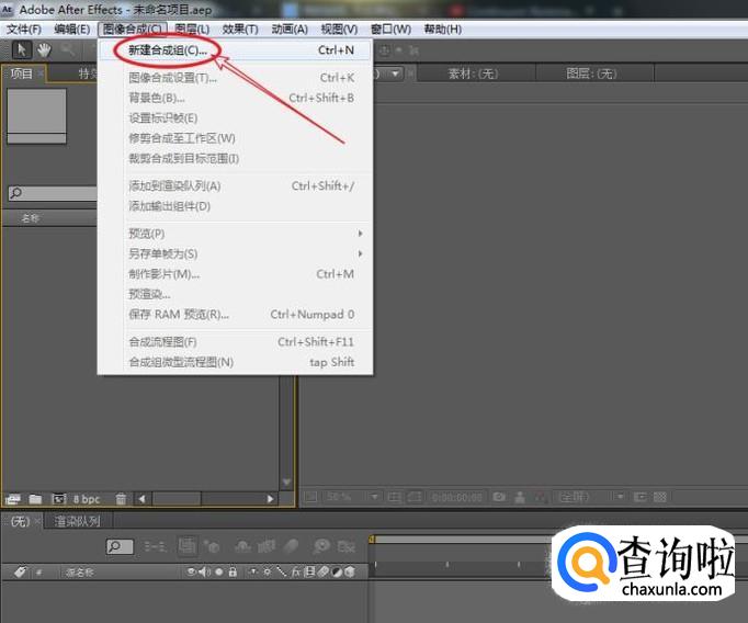 通过执行:图像合成>新建合成组命令,快速建立一个新的合成组。
