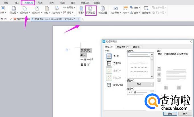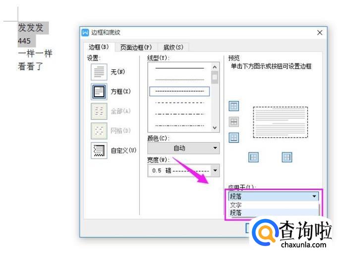 在这下方就可以控制设置页面边框是给文字加还是段落加,如图。