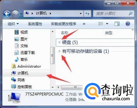 首先,如图,在左侧导航点击计算机,右侧显示的界面即为折叠组。