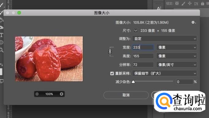 在图像大小中,调整图片的宽度高度以及分辨率,就能够调整图像大小。