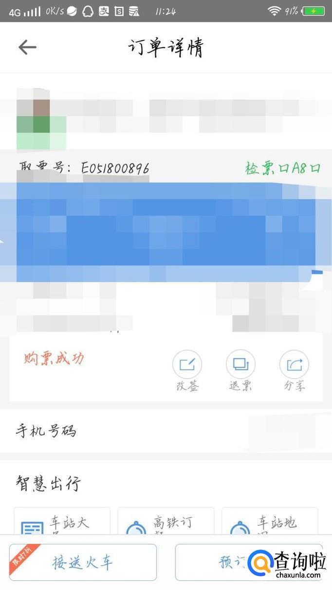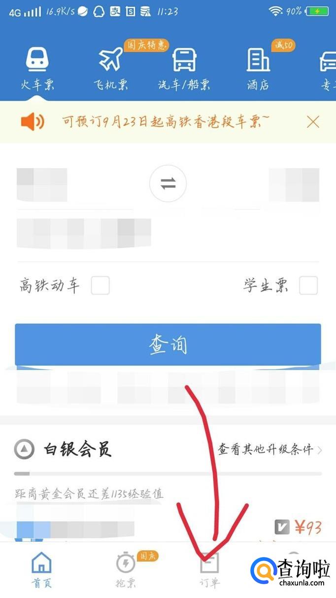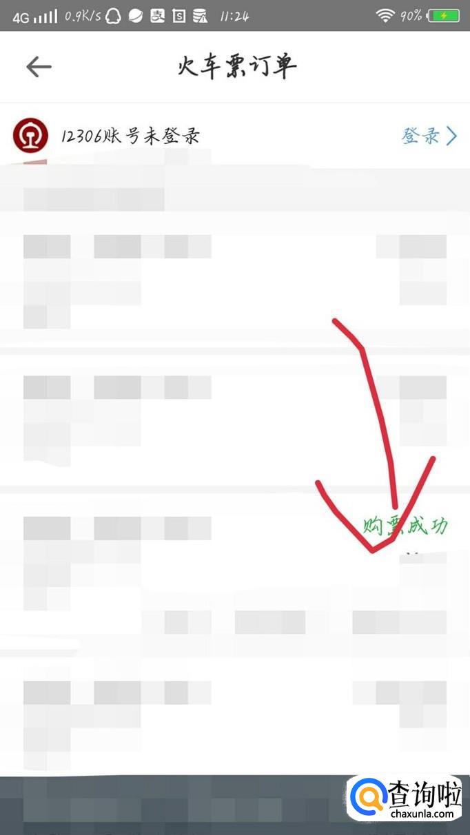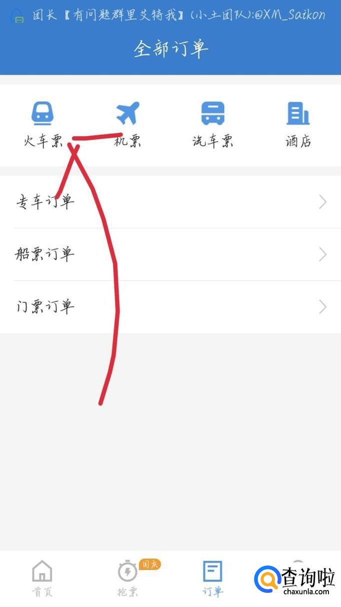 如果你订的是火车票,就点击“火车票”选项,如图1箭头所示。会出现一个新的界面,如图2所示。