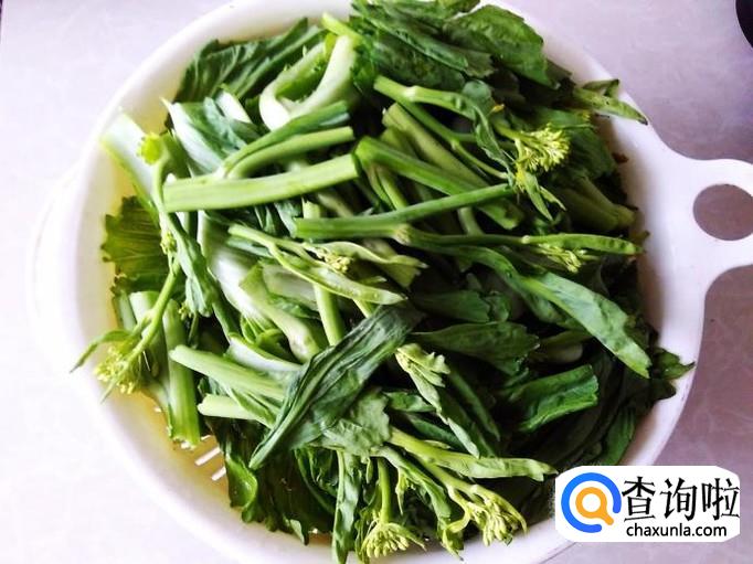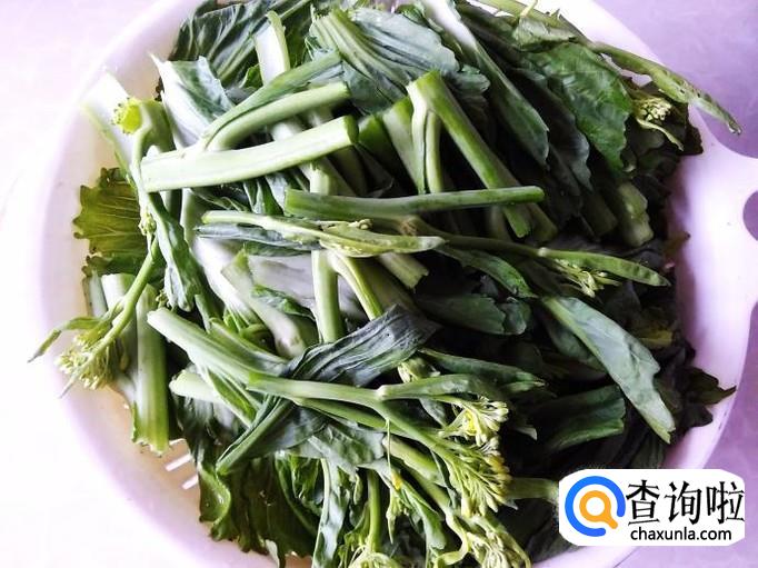 把芥菜心老梗去掉,然后折断成一段段。