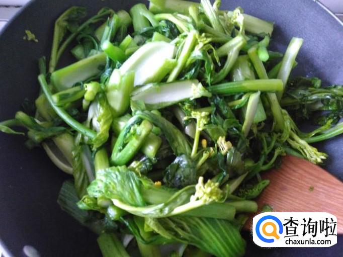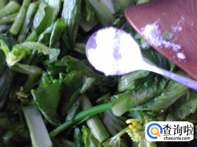 开火,把芥菜心放进去加适量的盐。