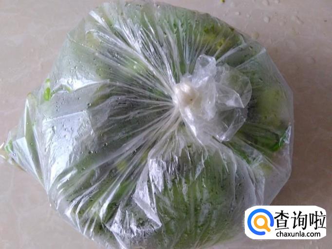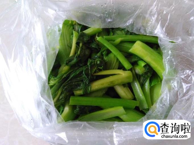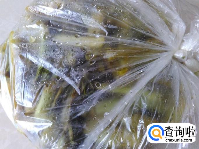 第二天在保鲜袋外面看到芥菜心变黄色了就可以打开炒吃了。
