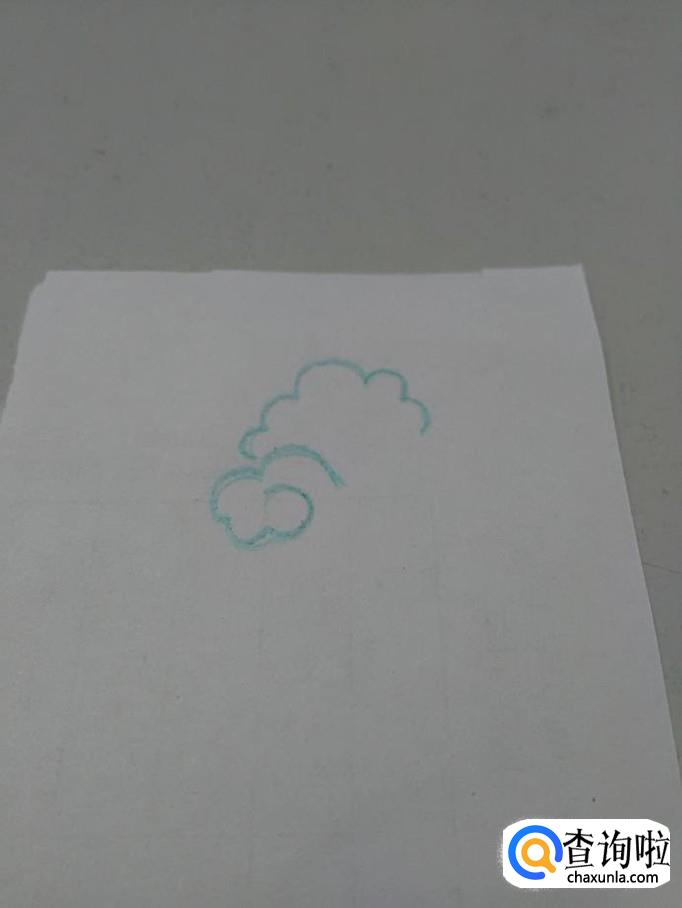 从左侧弧线的下方,再画一条长长的曲线,表示下半部分的云朵尾巴。