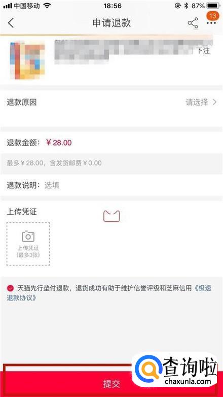 然后点击退款,如下图所示。
