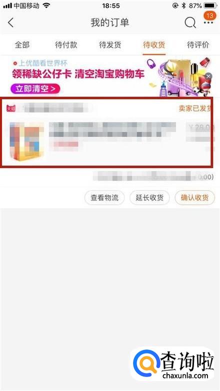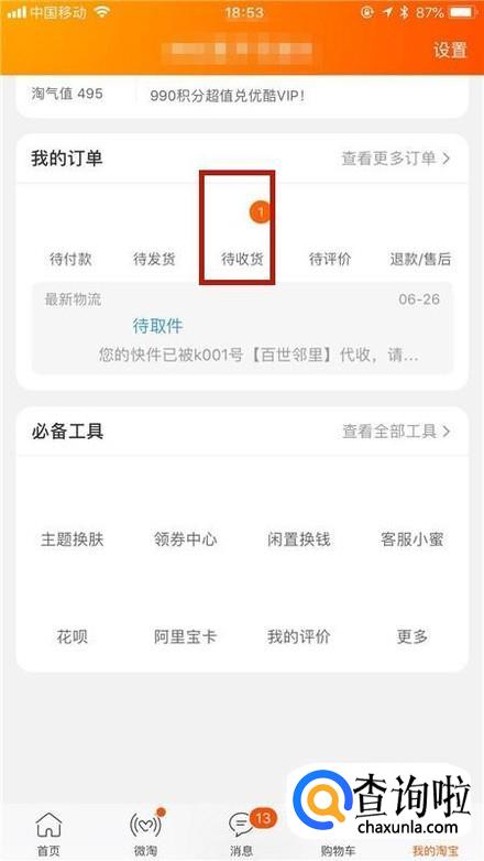 然后点击待收货,如下图所示。