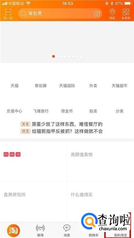 首先点击屏幕右下方的我的淘宝,如下图所示。