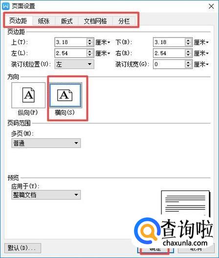 弹出的界面,我们可以看到里面有很多页面设置的内容项目,我们点击横向,然后点击确定;