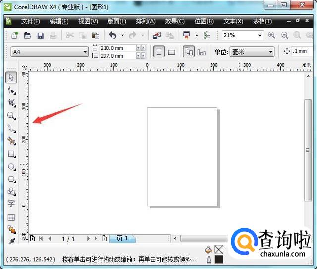 首先将cdr打开,打开之后可以看到cdr左侧的工具栏不见了,如图所示: