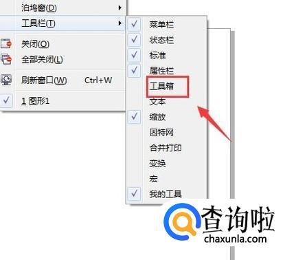 点击工具栏选项在其子级菜单哪里找到工具箱选项,如图所示: