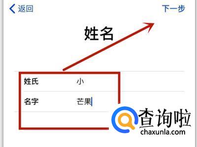 接着输入个人姓氏和名字并点击下一步。